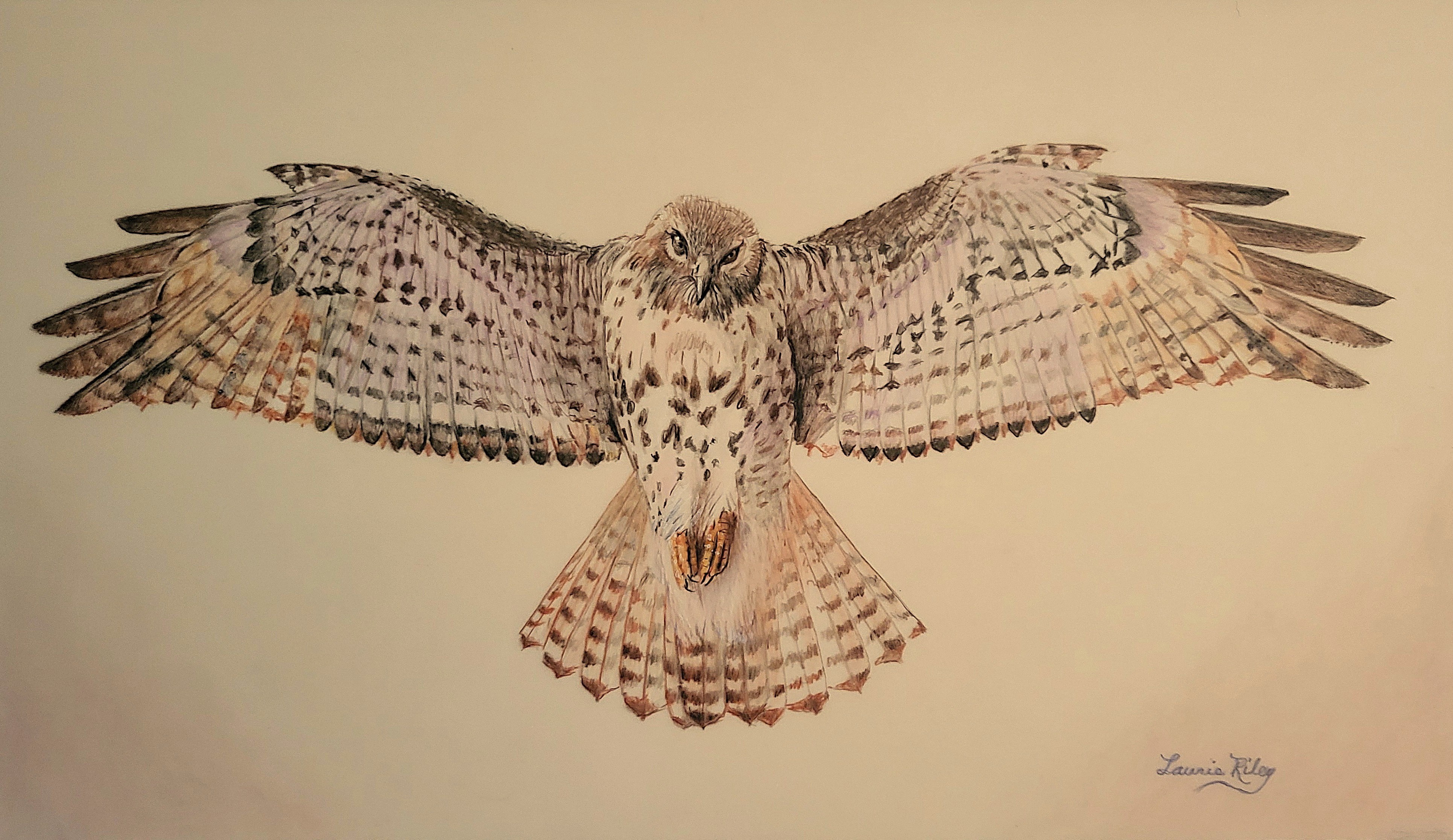 Eye in the Sky- Red-Tail Hawk – Color Pencil 11″x7″ – $3100 framed – inspired by the photography of Joseph Greenley, by permission